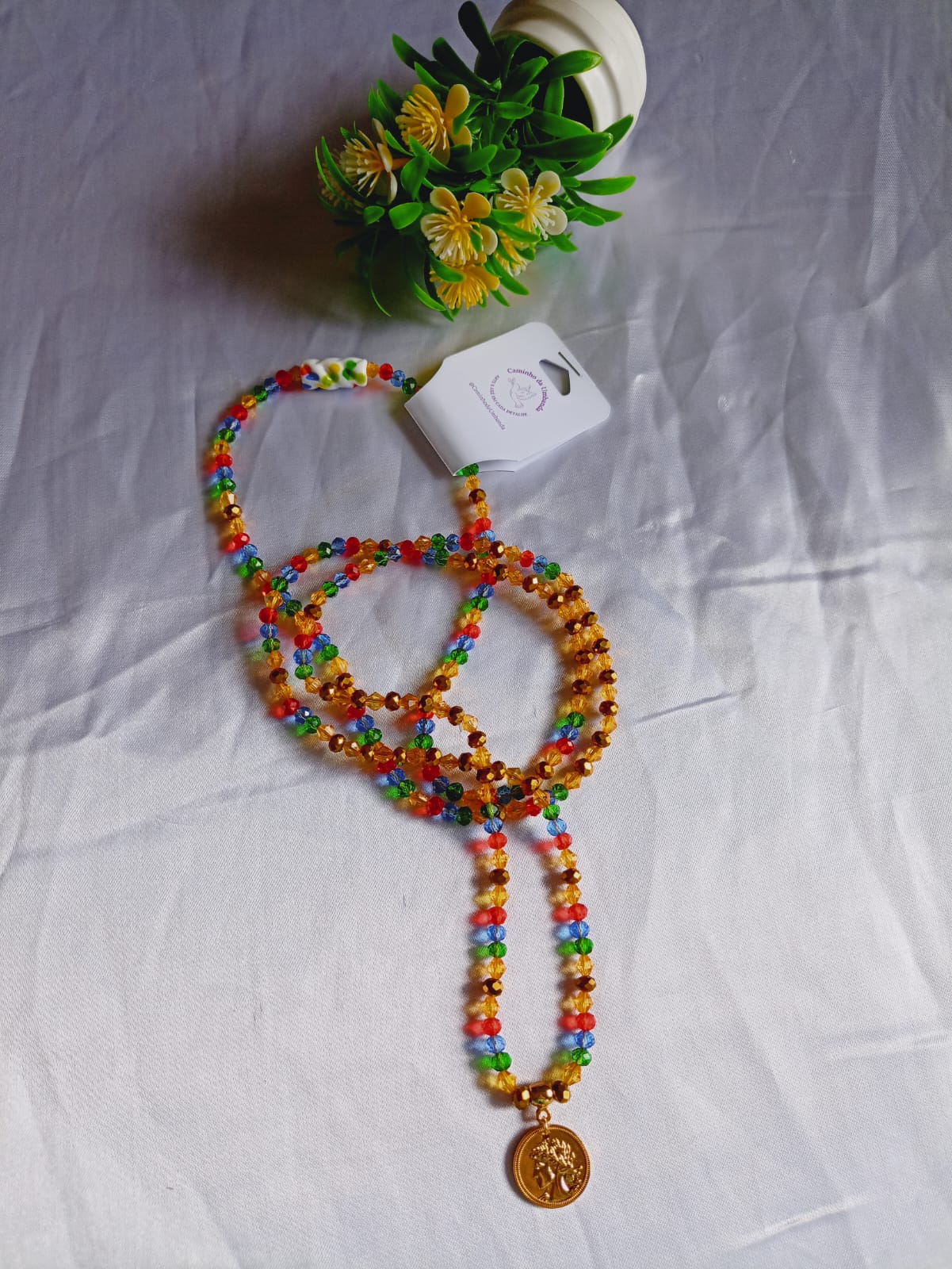 Esta é uma peça exclusiva, criada e confeccionada à mão por mim, Gabriela Vilaça, médium de Umbanda e artesã desde a infância.