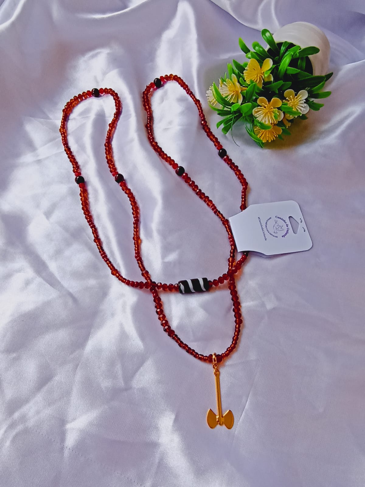Esta é uma peça exclusiva, criada e confeccionada à mão por mim, Gabriela Vilaça, médium de Umbanda e artesã desde a infância.